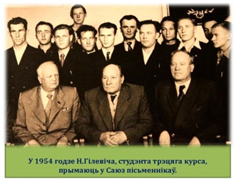 У 1954 годзе Н. Гілевіча, студэнта трэцяга курса, прынялі ў Саюз пісьменнікаў БССР.